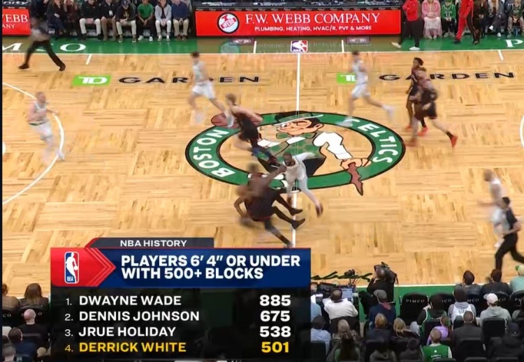 6尺4以下球员500+盖帽榜:榜首韦德885帽,第2位丹尼斯·约翰逊675帽,第3位朱·霍勒迪538帽